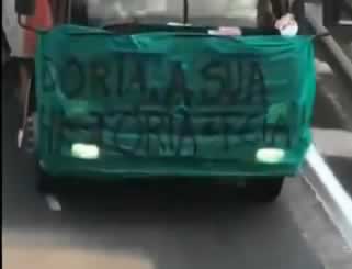 SÃO PAULO, 30/03/2020 — Por não ter cancelado o carnaval quando já sabia do alerta do governo federal sobre o coronavírus. Por ter determinado o fechamento do comércio e deixado os caminhoneiros sem infraestrutura para rodarem. Por todo mal que o governador tucano João Doria, o João Comunista, fez e está fazendo ao estado de São Paulo, caminhoneiros invadiram a cidade de São Paulo em carreata protestando e exigindo o impeachment do governador.