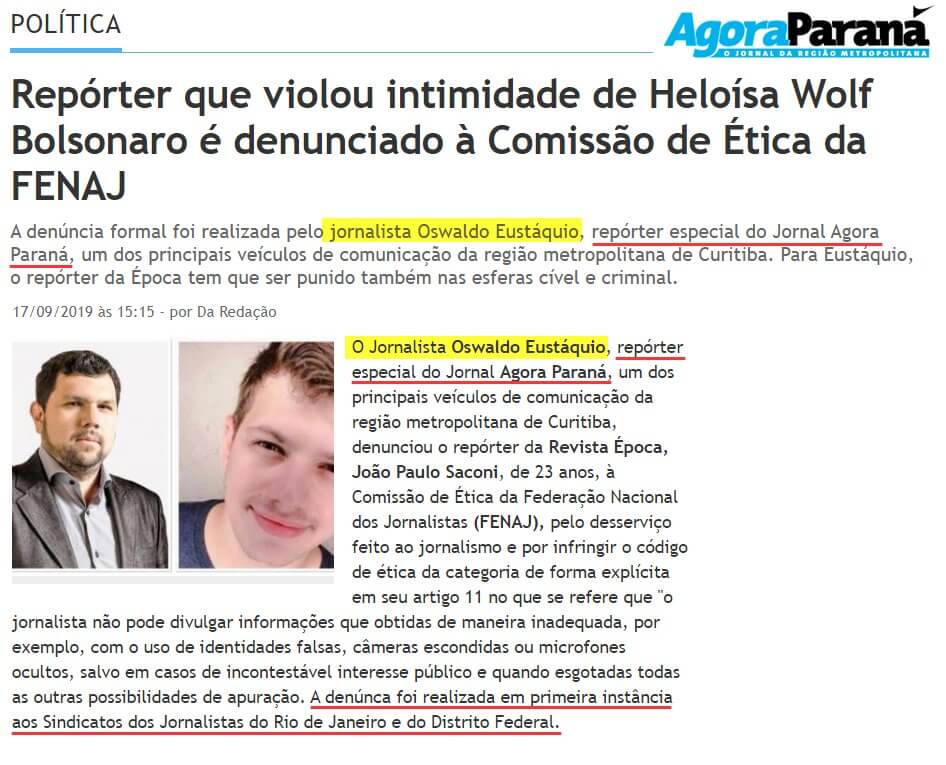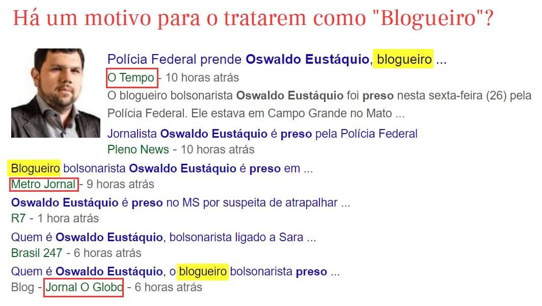 4) Então surge a pergunta: Qual a intenção da imprensa para não mencionar o Jornalista Oswaldo Eustáquio, preferindo o termo “Blogueiro” ou “Blogueiro Bolsonarista”?