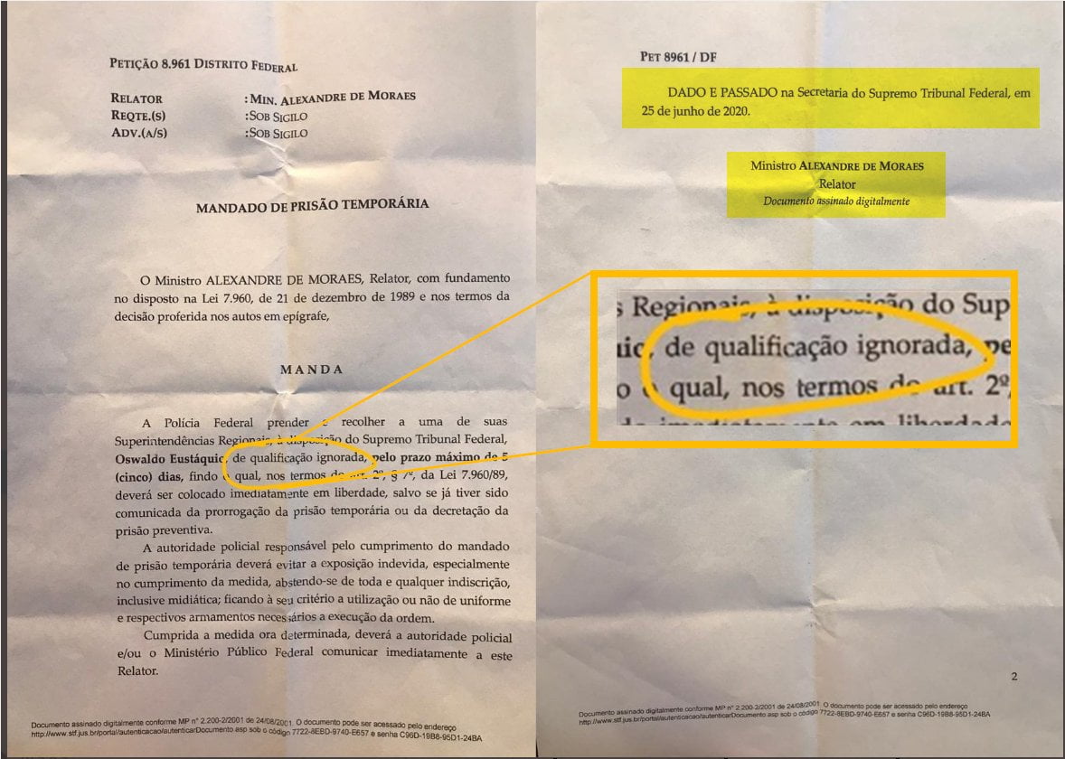 Sim, Oswaldo Eustáquio é um jornalista preso. Mas no mandado: “qualificação ignorada”