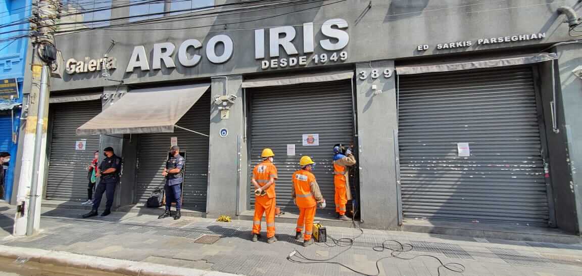 Os agentes de fiscalização da prefeitura agem em conjunto com a Guarda Civil Metropolitana e Polícia Militar. As portas dos estabelecimentos são lacradas com malotões e solda.