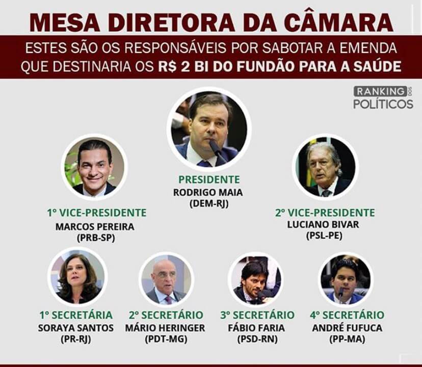 04/04/2020 — Ontem, Rodrigo Maia,presidente da Câmera dos Deputados, retirou o destaque que destinava o fundão eleitoral para o combate à pandemia. E vai seguir fazendo isso e colocando em pauta somente os projetos que ferram o Brasil lá na frente. Nos temos que pressionar para que ele vote os projetos 663 e 649, alertou a jornalista Taís Morais em seu perfil no Twitter.
