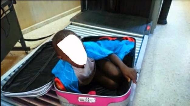 Ao passar a mala pela esteira de segurança, porém, os agentes viram uma criança encolhida lá dentro.