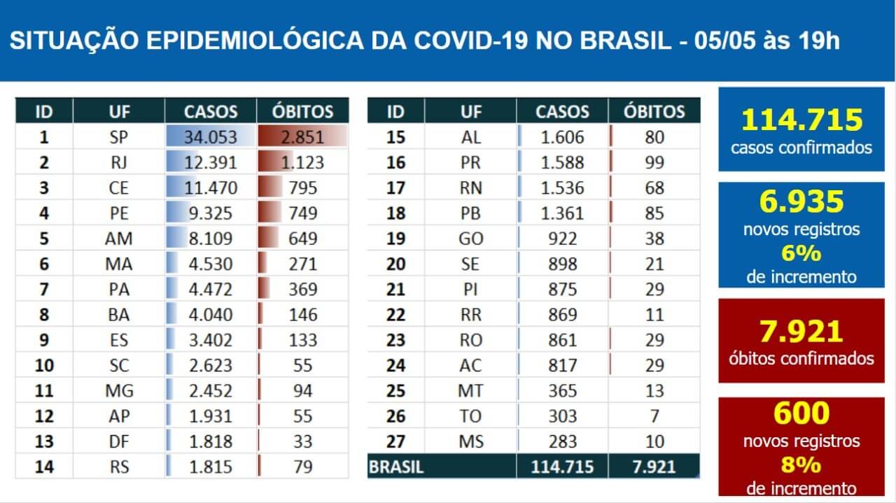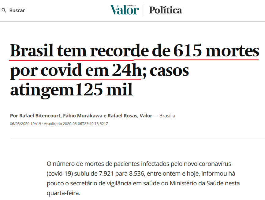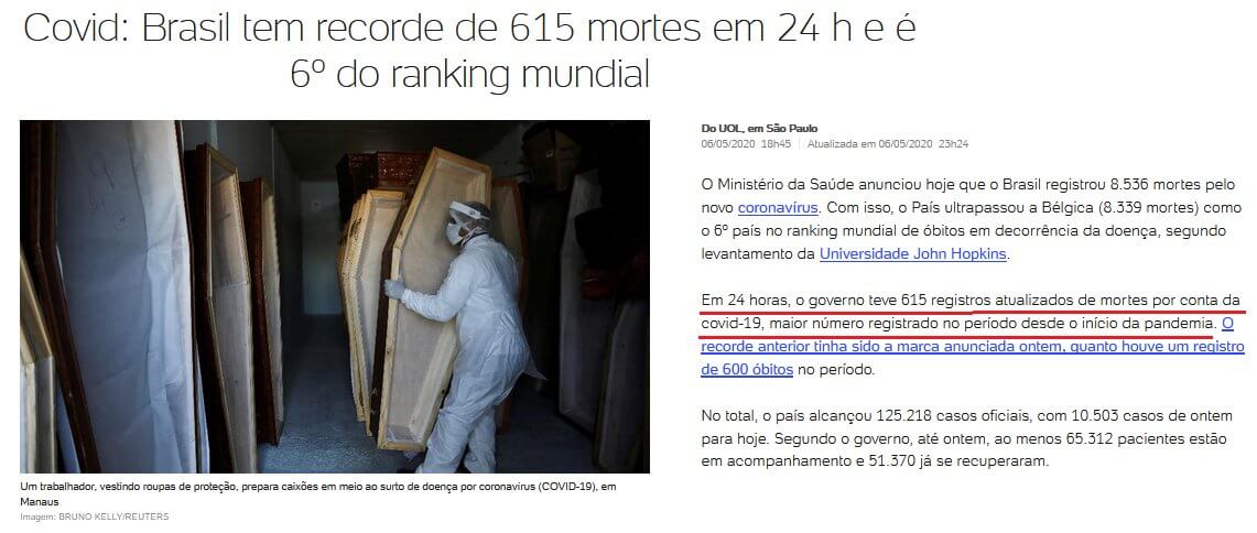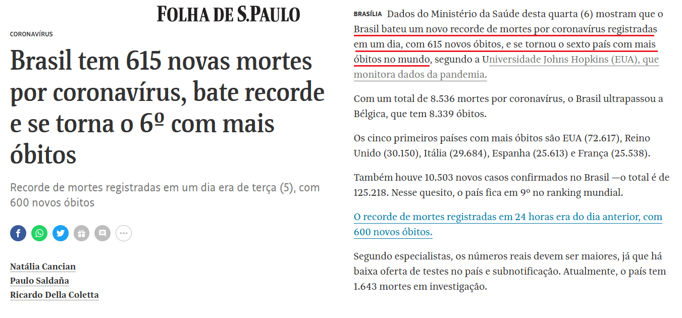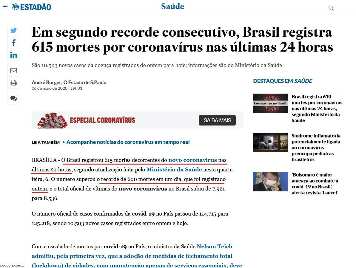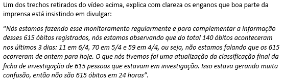 Os dados da terça-feira (5), também foram explicados em live pelo Secretário de Vigilância e Saúde, Wanderson de Oliveira e para variar, a imprensa também divulgou como se o Brasil tivesse 600 óbitos na terça assim como publicou o número total sem detalhamentos de 615 da quinta.