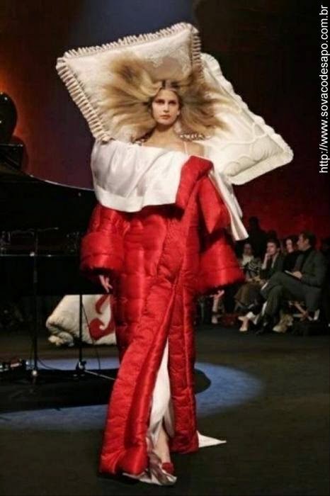 Como explicou uma estilista, o objetivo da moda conceitual é só para chamar a atenção, vender ideias, sonhos e criar desejo e não vender um produto literalmente.