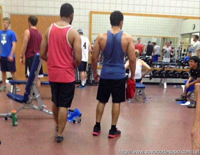 Malhando o bíceps, tríceps e peitoral.