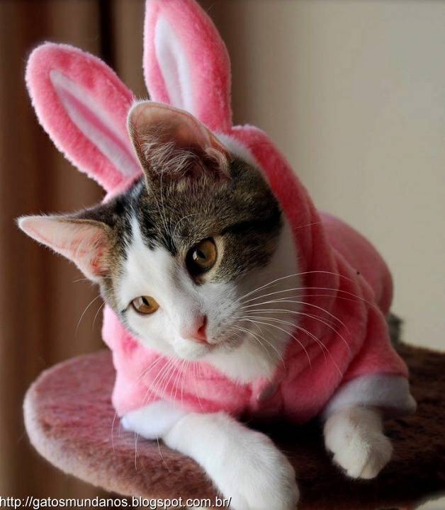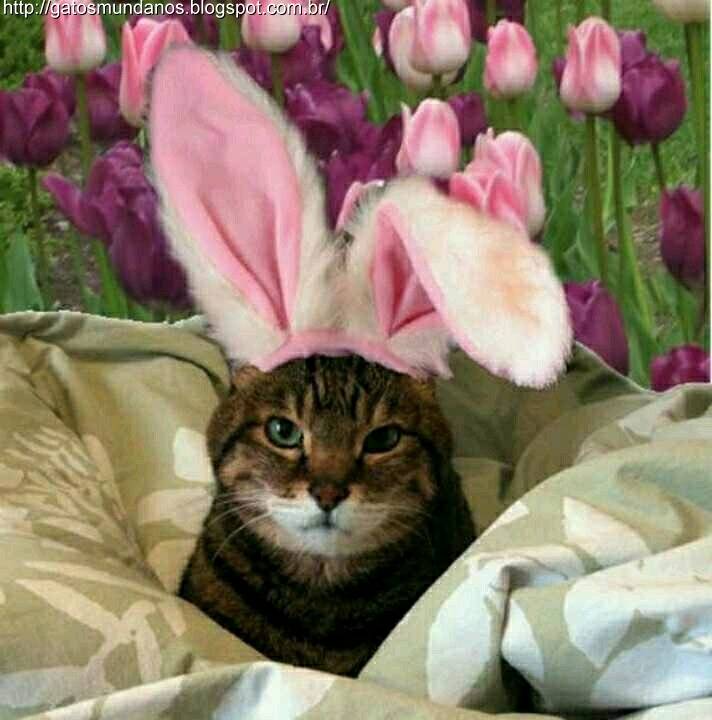 Gatos fantasiados de coelhinhos para a sua Páscoa.