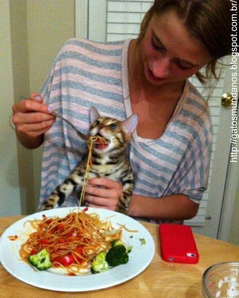 Um bom prato de macarrão nem os gatos dispensam.