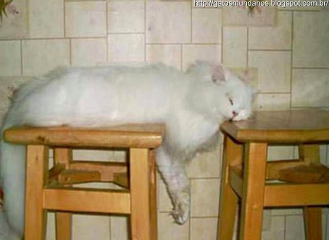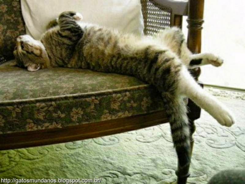 A flexibilidade dos gatos permite que eles durmam de qualquer jeito e em qualquer superfície e até na falta desta.