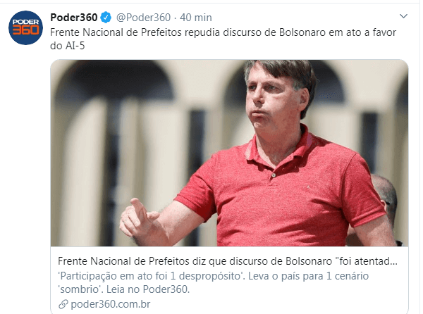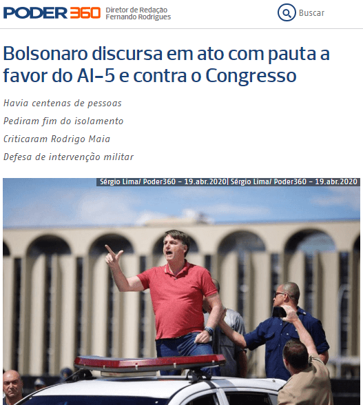 20/04/2020 – Existem muitos sites e outros veículos na internet a serviço da desinformação. Neste final de semana, a bola da vez foi tentar emplacar a ideia de que o Presidente Bolsonaro é a favor de uma intervenção militar e da volta do AI-5.