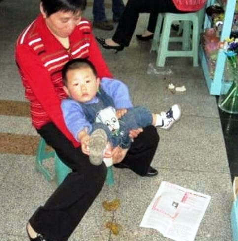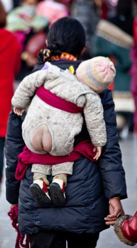 Os papais e mamães da China preferem manter os bebês, principalmente os que estão acima de 1 ano, livres para descobrirem suas necessidades fisiológicas.