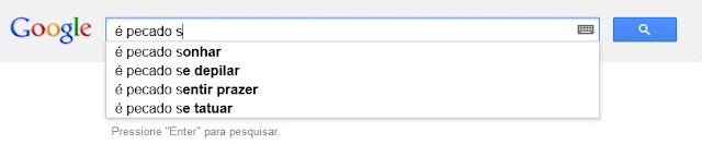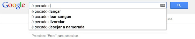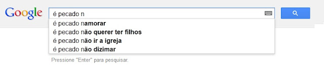 Quando uma pesquisa é feita muitas vezes no Google,ela já é automaticamente sugerida.Eu pesquisei “è pecado” no Google e achei umas coisas muito interessantes.