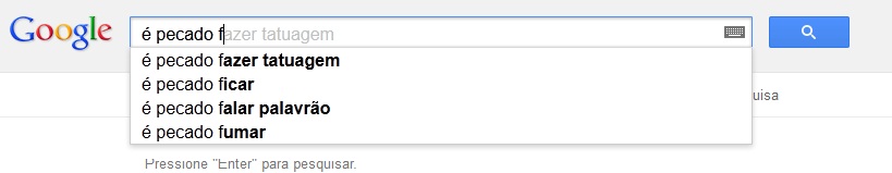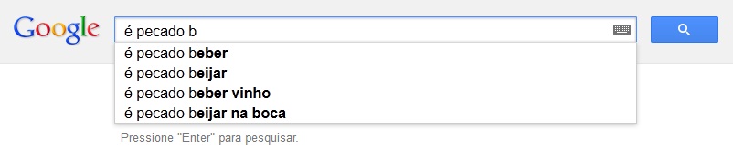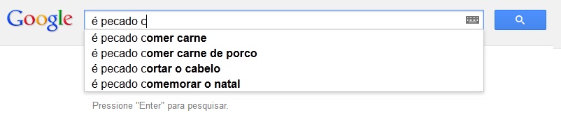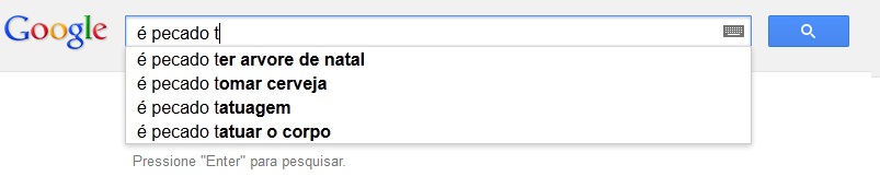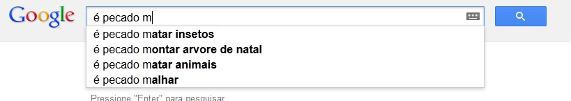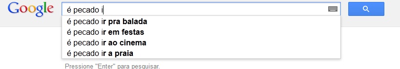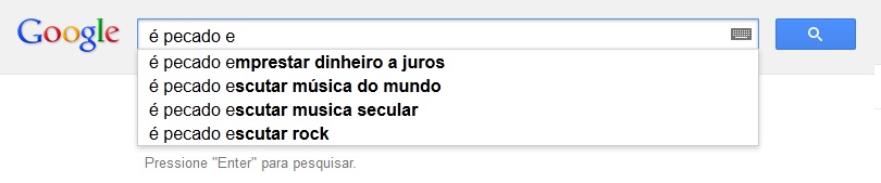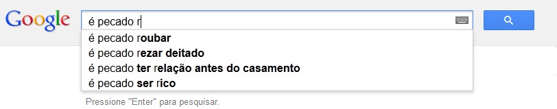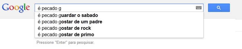Quando uma pesquisa é feita muitas vezes no Google,ela já é automaticamente sugerida.Eu pesquisei “è pecado” no Google e achei umas coisas muito interessantes.