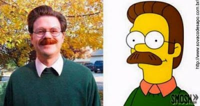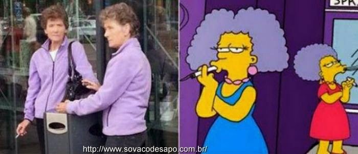 Doze pessoas que se parecem com alguns personagens do seriado animado Os Simpsons.